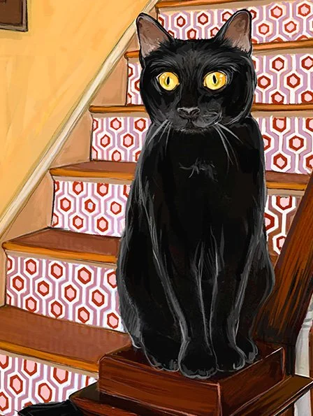 STYLIZED WITH COMPREHENSIVE, DETAILED BACKGROUND, DIGITALLY PAINTED. CAN BE PRINTED ON CANVAS AND CARD STOCK.